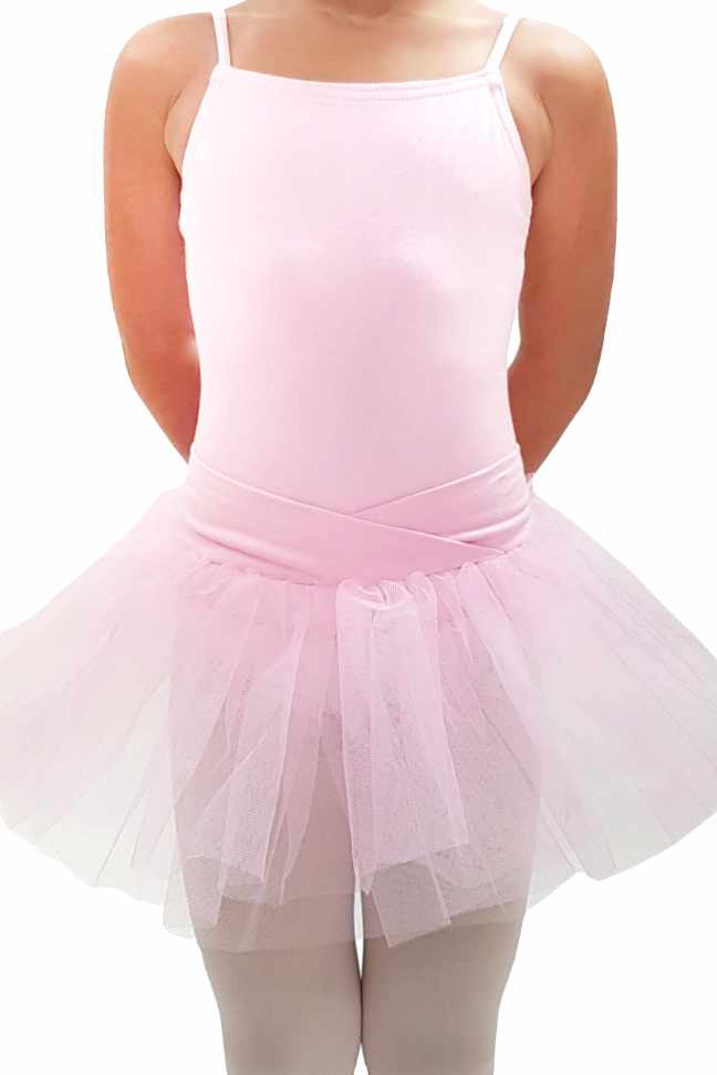 Girls' Camisole leotard with an Integrated Tutu skirt, made by Go Dance using elastic and soft fabrics.