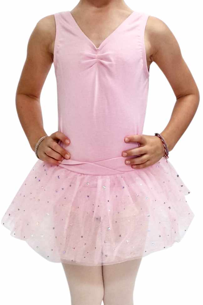 Girls’ Tank Leotard with an intergrated 3 Layer Tutu featuring Silver Details.