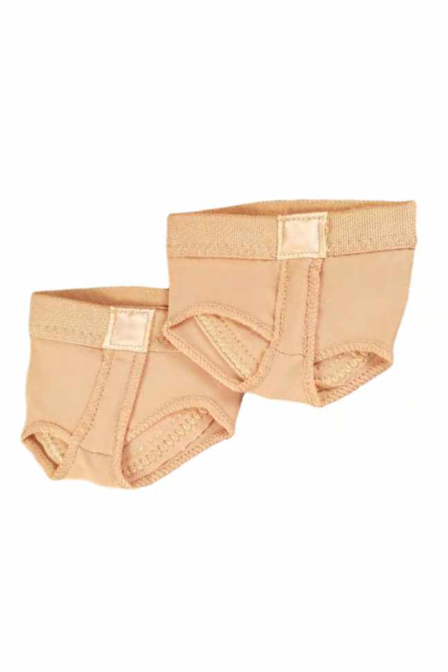 Προστατευτικά ποδιών τα οποία σας επιτρέπουν να προστατεύετε τα πόδια σας από κοψίματα και γρατζουνιές, δημιουργώντας παράλληλα την ψευδαίσθηση ότι χορεύετε ξυπόλητοι. Η απαράμιλλη αίσθηση στο δάπεδο, η άρθρωση του ποδιού και η πρόσφυση προέρχονται από δύο ξεχωριστά σουέτ μπαλώματα σόλας που σχηματίζονται στα μεμονωμένα μαξιλαράκια του ποδιού σας. Η διπλή ραφή ασφαλίζει τα μαξιλαράκια, ενώ το βελούδινο λάστιχο κινείται με το πόδι και κρατά το παπούτσι στη θέση του. Συνιστάται για μαθήματα λυρικής και μοντέρνας μουσικής.