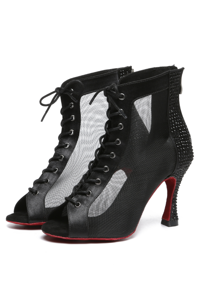 Γυναικεία μποτάκια λάτιν χορού Go Dance CD002 με πολλαπλές επιλογές τακουνιών, δικτυωτό πάνω μέρος.