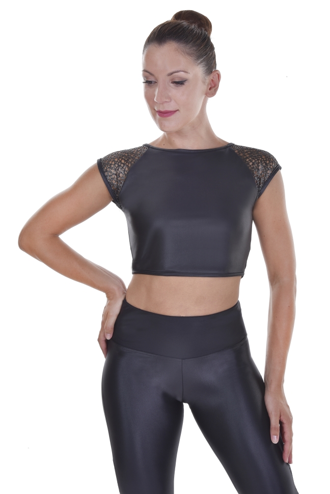 Γυναικείο Μπουστάκι Λαιμόκοψη, με Διχτυωτά Μανίκια Ώμου