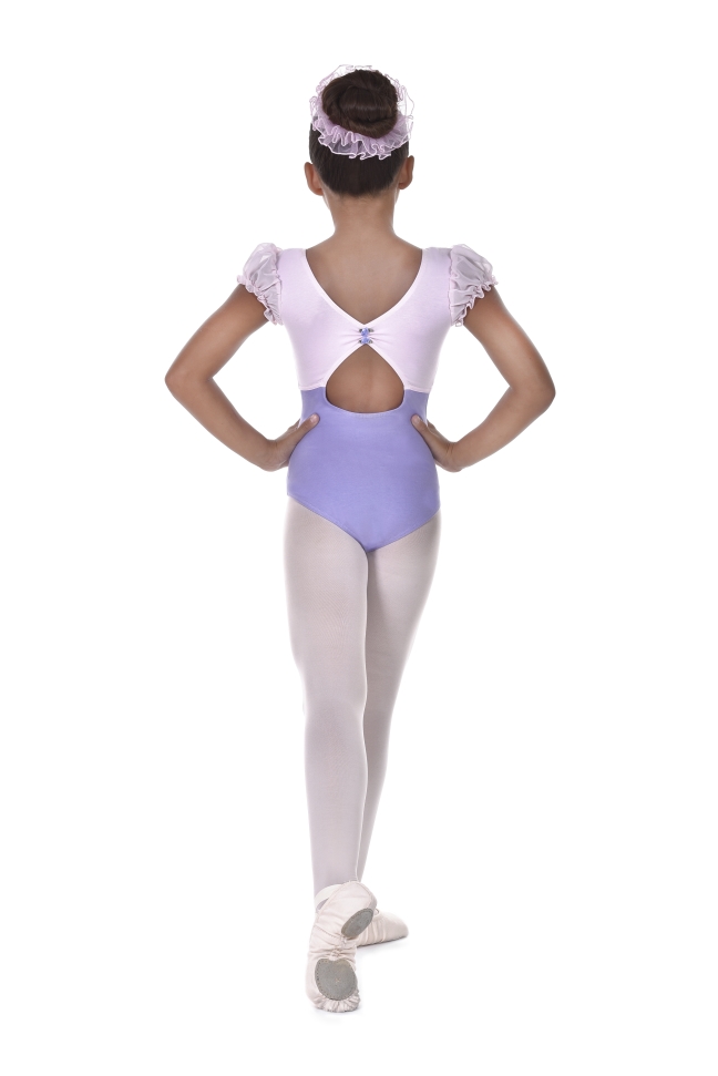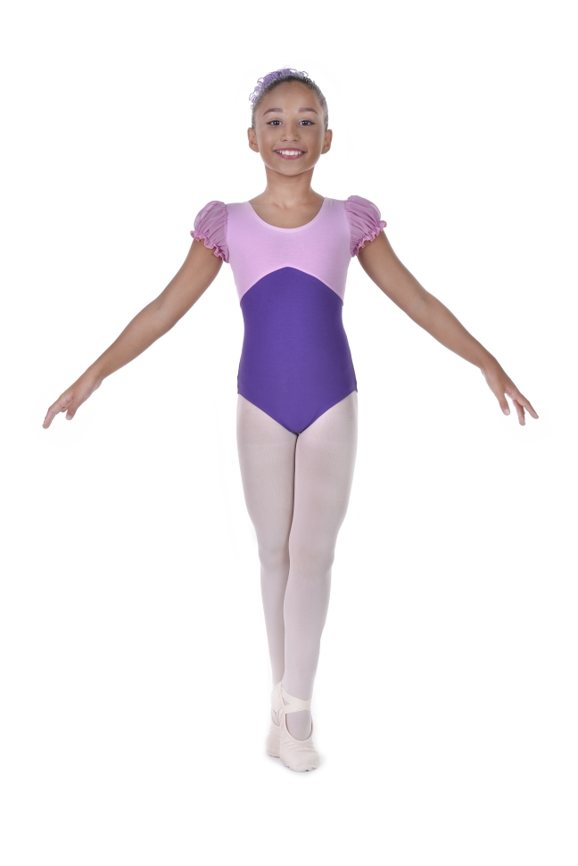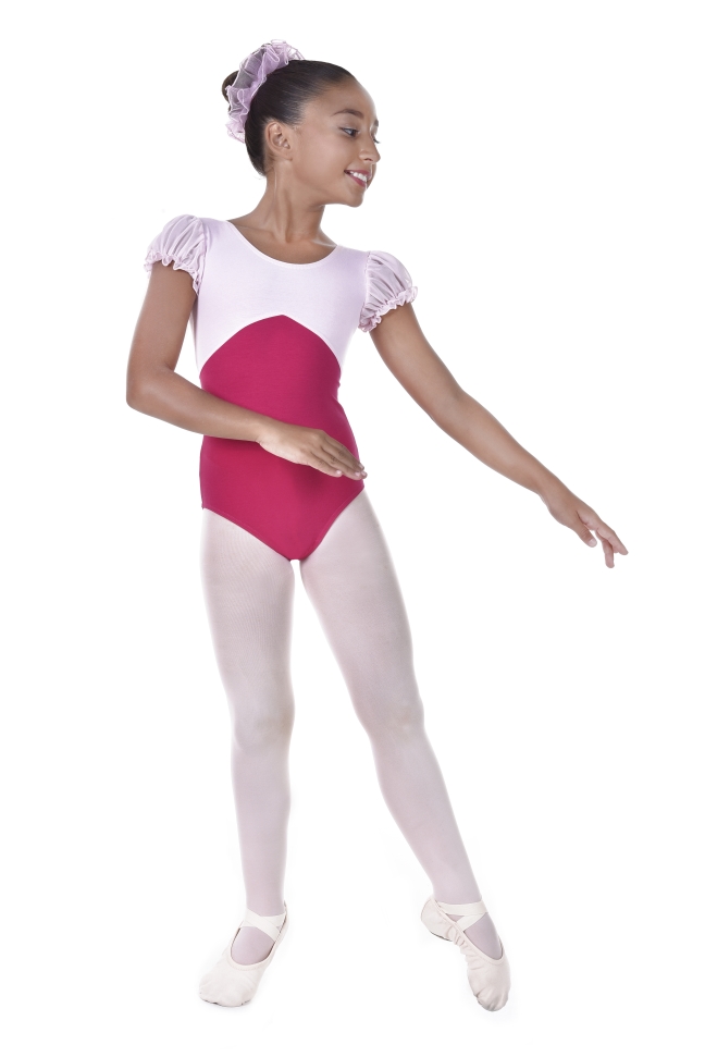 Girls Bicoloured Puff Sleeved Leotard Pinched Key Hole