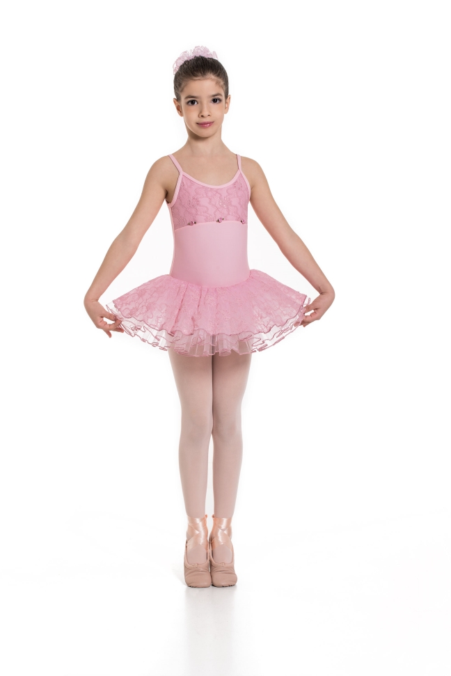 Girls Camisole Leotard With Tulle Lace Skirt Upper Lace Bodice