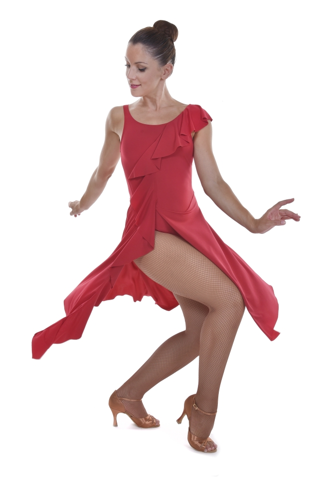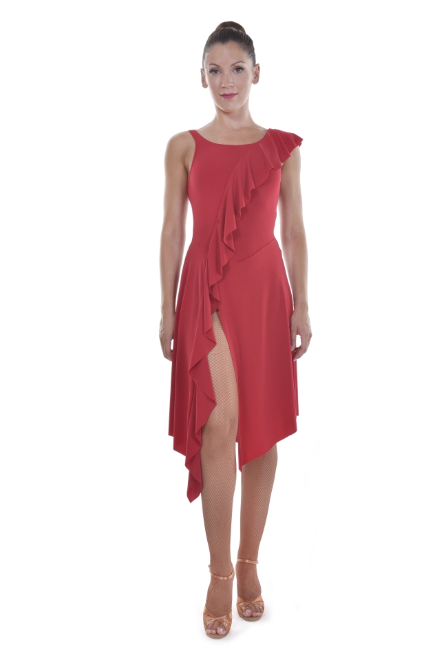 Ladies Tank Split Front Leotard Dress With Ruffle Hem