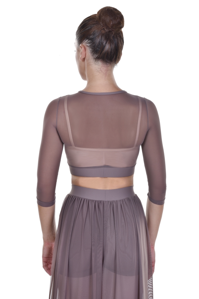 Ladies 3/4 Sleeved V-Neck Mesh Top